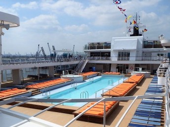 Veľká obrazovka na premietanie filmov na vonkajšej palube