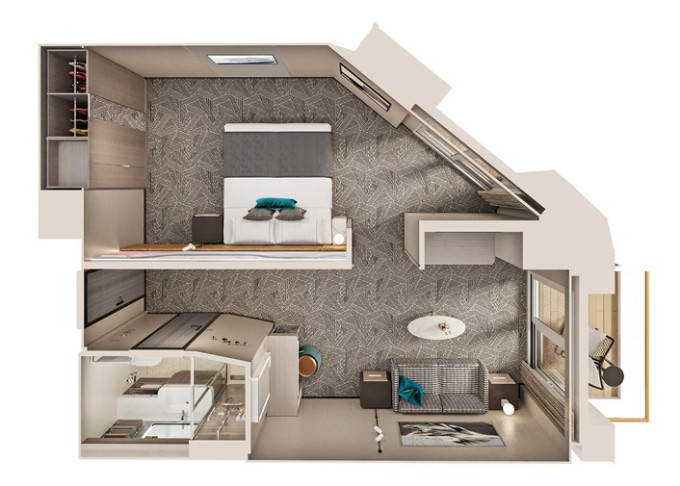 H5 - The Haven Owner's Suite 50-57 m² / balkón 10-12 m².12. paluba, Max 4 osoby. Výhody The Haven. 8 720 € 4 360 € za osobu
