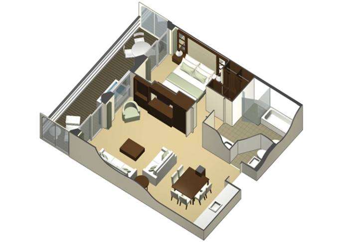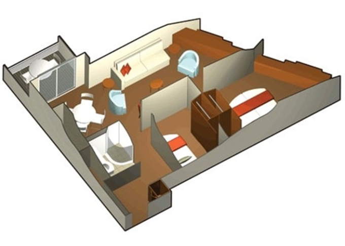 | S1 - Sky Suite 28 m² + balkón 7 m². 6. až 12. paluba. Max 4 osoby. Výhody Suite The Retreat. | 4 015 € 4 015 € za osobu |