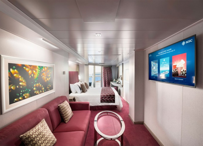 | YC1 - Yacht Club Deluxe Suite 25 m² + balkón 8 m². Spálňa s obývacou časťou, šatník. Max 5 osôb. 16-18. paluba. Cenový model MSC Yacht Club. | 4 340 € 1 085 € za osobu | ||