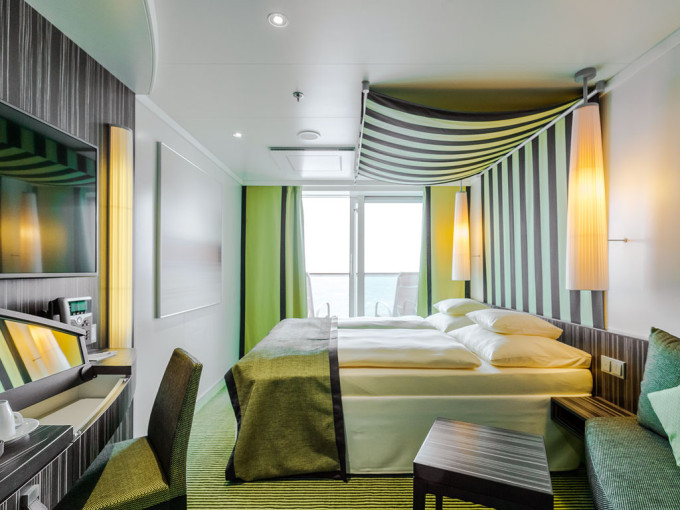 Vo všetkých kajutách sa nachádza regulovateľná klimatizácia, safe, kúpeľňa so sprchou, sušič na vlasy, telefón, Tv s plochou obrazovkou.