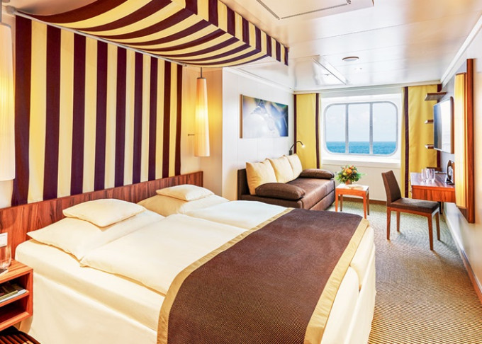 | MD - Vonkajšia kajuta PREMIUM 22-23 m². Neotvárateľné okno. 4. paluba. Max 4 osoby. Cenový model Premium. | 2 750 € 1 375 € za osobu | ||