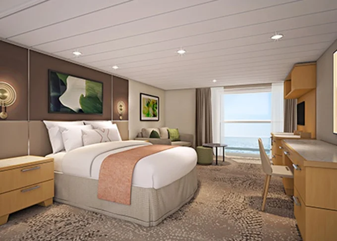 - Kajuty sú umiestnené v blízkosti lodného Spa. K ich vybaveniu patrí posilnený systém vzdušnej filtrácie, posteľ Queen-Size (v kategóriách Edge King-Size), veľké zasúvacie sklenené dvere, exkluzívne posteľné prádlo eXhale®, veľkorysé skladovacie priestory.