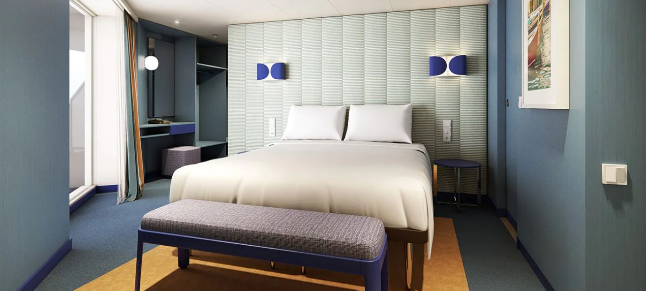 • Ubytovanie v kajute vybranej kategórie. Základné vybavenie: kúpeľňa s WC a sprchovacím kútom, 2 lôžka spojiteľné do manželskej postele, skrine, nočné stolíky, toaletný stolík a stolička, nastaviteľná klimatizácia, interaktívna satelitná TV s plochou obrazovkou, trezor, sušič na vlasy, uteráky a posteľné prádlo, Wi-Fi pripojenie (za poplatok), 24/7 kajutová služba (za poplatok).