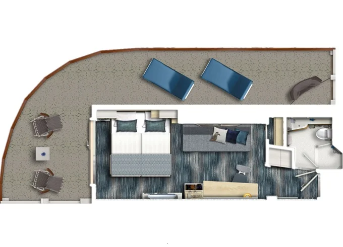| SUSO - Übersee Suite 40 m² + balkón 9 m² s ležadlami a hojdacou sieťou. 14. paluba. Max 4 osoby. Výhody Suite. | 14 658 € 7 329 € za osobu | ||